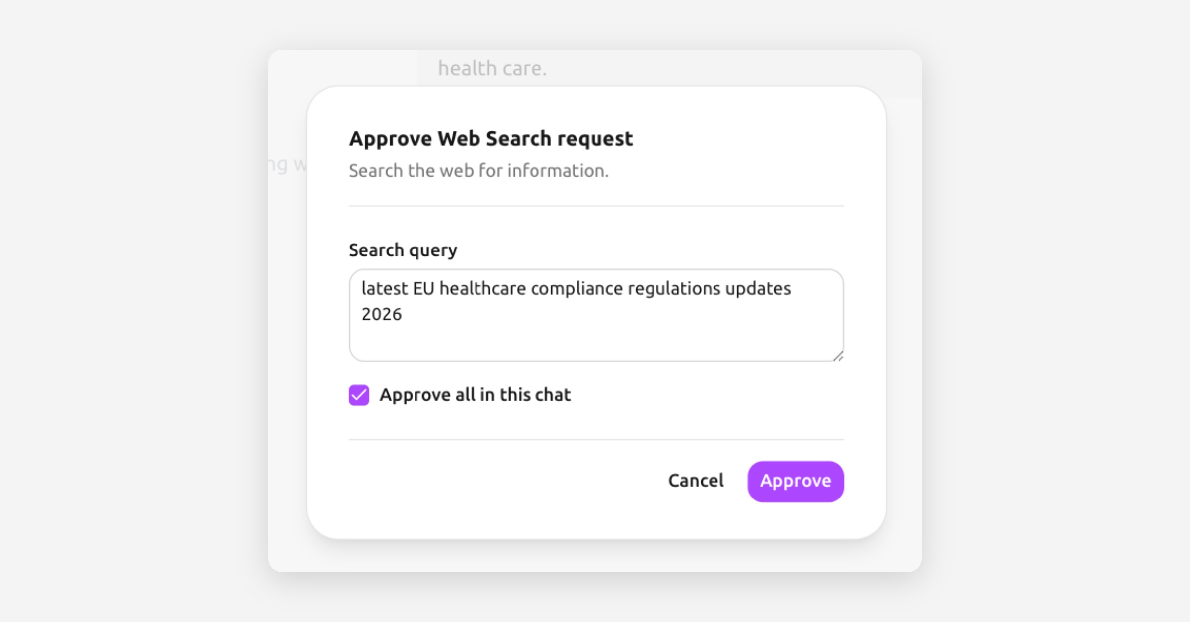 You can choose to approve all searches in a conversation if you trust the flow.